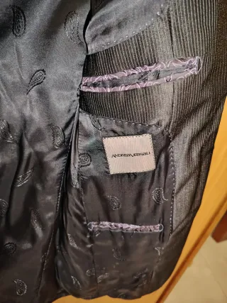 Elegante giacca sartoriale Andrea Versali. - Realizzata in Italia. - Design classico a due bottoni. - Tasche a filetto frontali. -qualità: 100% Made in Italy, fattura artigianale di alto livello. Design: Tessuto con trama ricercata e bellissimi dettagli interni (fodera Paisley logata). Condizioni: Capo eccellente, usato pochissimo e pari al nuovo. Non c'è più etichetta interna della tg ma dovrebbe essere una M comunque le misure sono: Lunghezza 69 cm. Petto da ascella ad ascella 47 cm. Spalle 43cm.