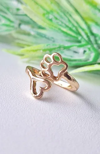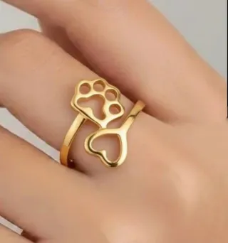 Anello regolabile con un design unico a forma di zampa di cane e cuore. - Finitura color oro. - Design a zampa e cuore. - in acciaio non scurisce.