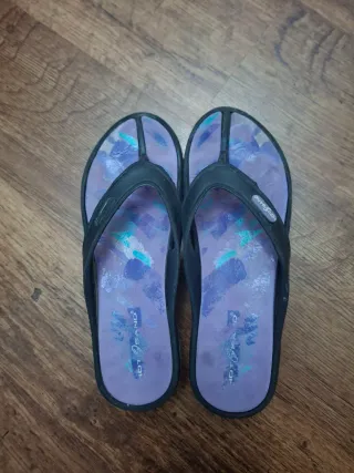 Comode infradito con un simpatico design a stelle marine. - Suola interna rosa con fantasia. - Fascetta bianca.