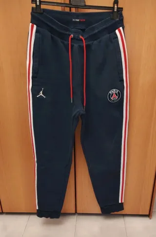Pantalone della tuta Jordan, colore blu, con banda laterale rossa e bianca. - Logo Jordan ricamato. - Stemma Paris Saint-Germain ricamato. - Coulisse rossa in vita. - Tasche laterali.