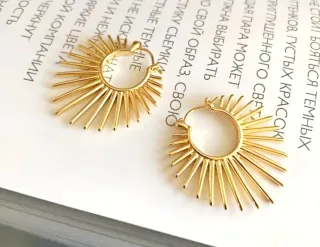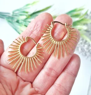 Eleganti orecchini a forma di raggiera. - Design ispirato al sole. - Finitura dorata lucida. -Dimensioni 3.00 cm. X 3.00 cm.