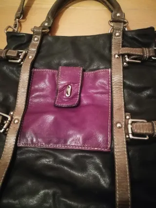 Borsa tracolla pelle nera e viola