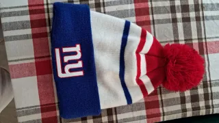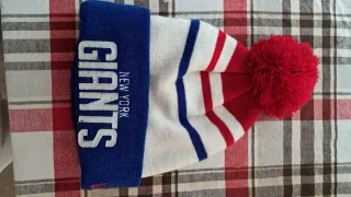 Berretto unisex con pompon rosso, perfetto per i tifosi dei New York Giants. Realizzato in maglia con strisce rosse e bianche. - Logo New York Giants ricamato sul davanti. - Pompon rosso sulla parte superiore.