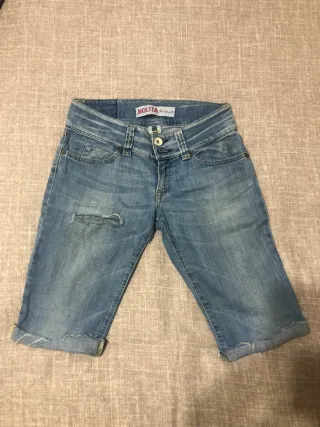 Pantaloncino corto in denim, perfetto per l'estate. - Vita media. - Effetto used con strappo. - Orlo risvoltato.