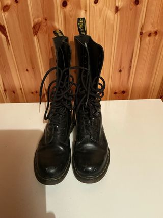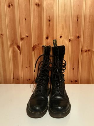 Iconici anfibi Dr. Martens neri, modello classico. - Tomaia in pelle lucida. - Allacciatura frontale con lacci. - Suola in gomma resistente.