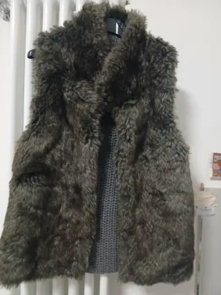 Gilet Tezenis da donna in morbida pelliccia sintetica color grigio Il retro è in maglia. - Pelliccia sintetica effetto pelo lungo. - Inserti in maglia a coste.