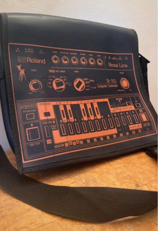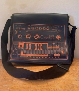 Borsa a cartella con design ispirato alla Roland TB-303. - Colore nero. - Tracolla regolabile. - Pezzo unico