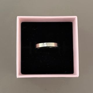 Elegante anello con una pietra centrale. - Design moderno e raffinato. - Dettaglio di una pietra quadrata incastonata.