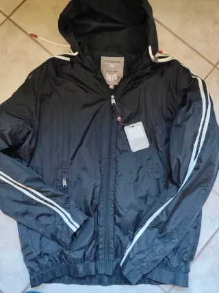 Giubbotto da uomo Cotton & Silk, perfetto per la mezza stagione. - Cappuccio con laccetti. - Zip frontale. - Tasche laterali con zip. - Polsini e fondo elasticizzati. - Dettagli a contrasto sulle maniche.