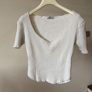 Canottiera cropped H&M. - Tessuto a coste. - Spalline sottili. - Scollo a vogatore.