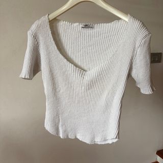 Vendo carinissimo top bianco a maniche corte firmato Zara Trafaluc. • Dettagli: Lavorazione a costine con un bellissimo scollo ampio e orli effetto "tagliato a vivo" (leggermente sfrangiati, è proprio il modello così!). • Vestibilità: Aderente e leggermente cropped, perfetto da abbinare a jeans a vita alta o gonne. • Brand: Zara Trafaluc • Taglia: S (EUR/USA S, MEX 26) • Condizioni: Ottime condizioni, nessun difetto visibile