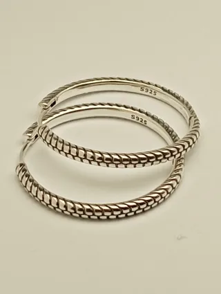 Eleganti orecchini a cerchio in argento S925. - Design a corda intrecciata. - Chiusura a scatto.
