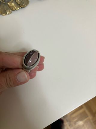 Elegante anello da donna con un design moderno e raffinato. - Due pietre ovali incastonate, una marrone e una rosa. ma girevole è più colori - Montatura in metallo lucido.