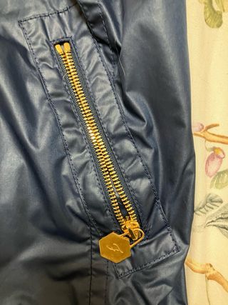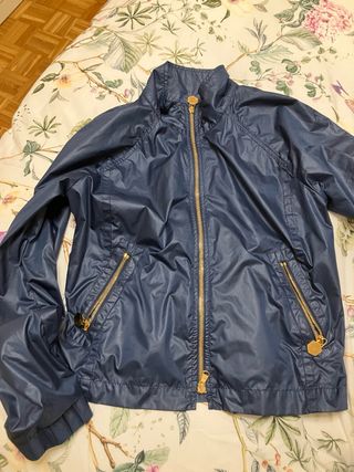 Giacca leggera dal design moderno e dettagli dorati. - Tessuto liscio e lucido. - Zip frontale. - Tasche laterali con zip. - Collo alto.