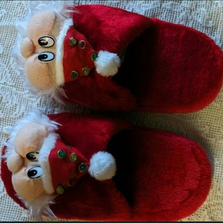 Ciabatte natalizie Babbo Natale Ciabatte con Babbo Natale in materiale morbido simil pelo rosso, con applicazione del viso di Babbo Natale. Sul suo cappello sono presenti alcune lucine che non si illuminano. Taglia 40. No cartellino nè scatola. Mai indossate. Il tutto come da foto. Calde e simpatiche, perfette da indossare nel periodo natalizio.