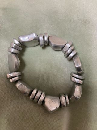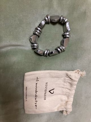Elegante bracciale VESTOPAZZO con un design unico. - Finitura color argento. - Elementi irregolari alternati a dischi. - Perfetto per aggiungere un tocco di stile.