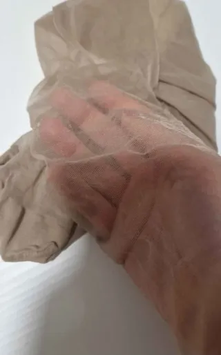Calze autoreggenti nere 10 den velatissime. Tessuto di nylon e pizzo, setoso, morbido e liscio. Le calze trasparenti.