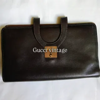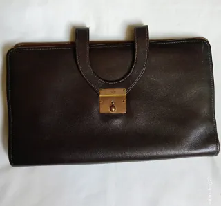 Elegante pochette Gucci in pelle marrone. Articolo raro anni 50/60 interni in nappa mod.brevetto n.74 288 - Design classico e intramontabile. - Dettaglio metallico frontale. - Manico superiore arrotondato.