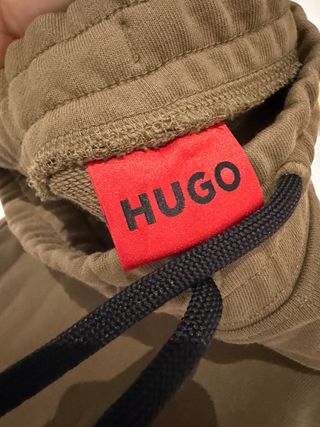 Pantaloni da tuta del marchio Hugo Boss. Colore marrone. Cordoncini neri per la regolazione.