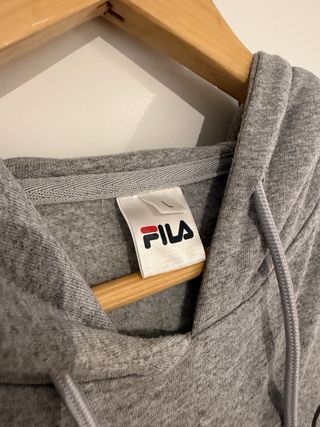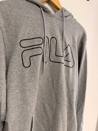 Felpa con cappuccio del marchio Fila in colore grigio. Logo Fila a contrasto. Cappuccio con cordoncini. Tasca a marsupio.