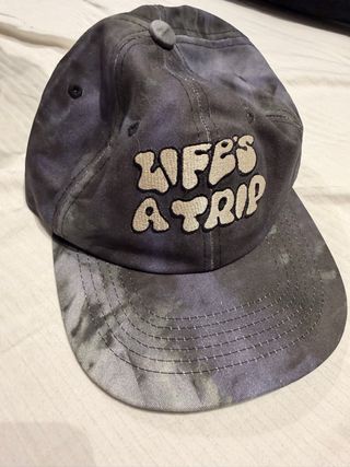 Berretto con un design tie-dye unico nei toni del nero e del grigio. Presenta un ricamo vistoso nella parte anteriore. Design tie-dye. Ricamo LIFE'S A TRIP nella parte anteriore.