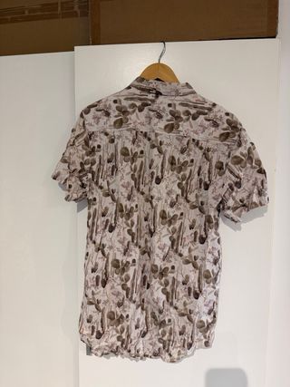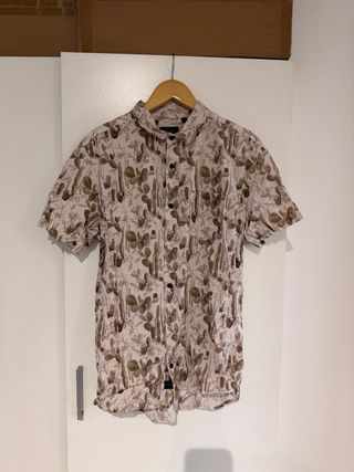 Camicia a manica corta con un accattivante motivo di cactus. Design originale di Globe. Tonalità di terra e verde. Colletto da camicia.