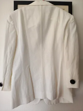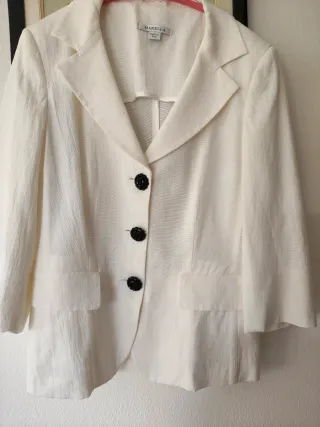 Elegante giacca da donna, usata pochissime volte. Un capo versatile e raffinato. - Chiusura con bottoni neri. - Tasche frontali. - Tessuto leggero e confortevole.