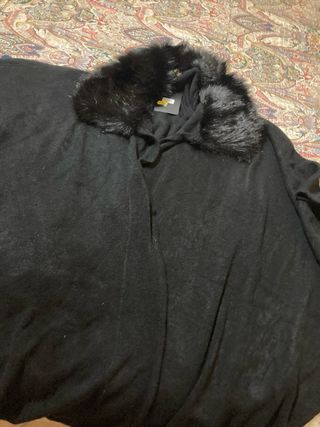 Ponchio nero con collo di ecopelliccia nuovo ancora con letichetta