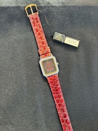 ⌚️ Splendido orologio Seiko Tank nuovo NOS mai indossato in perfette condizioni estetiche e perfettamente funzionante. Fondo di magazzino con ancora il cartellino originale. Quadrante con due tonalità di rosso e Borgogna nella parte centrale ed esterna. Cassa rettangolare bicolore argento e oro da 27x30mm. Indici dorati. Cinturino in pelle rossa nuovo originale marchiato Seiko. Fibbia originale dorata. Batteria nuova e perfettamente funzionante. Vera occasione! Orologio molto elegante e raro!!! 🎉 Per qualsiasi informazione non esitate a contattarmi!!! 📦 Spedizione veloce entro 24 ore. #seiko #seikotank #tankwatch