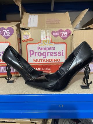 Eleganti tacchi neri con un design unico. - Tacco a forma di logo YSL. - Finitura lucida. Indossati solo una volta. Vendo per inutilizzo