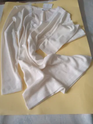 Maglia intima da donna a maniche corte, realizzata in caldo cotone. - Tessuto morbido e confortevole. - Design a maniche corte. - Ideale per le giornate più primaverili fredde. Brand Eco Ragno. Disponibilità taglie 2,3,4,5,6,7. La finitura del collo con merletto è disponibile solo per alcune taglie. Scrivimi la taglia desiderata e ti confermerò la disponibilità specifica.
