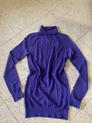 Maglione Benetton viola con collo alto. Presenta alcuni piccoli buchi. - Morbido al tatto. - Maniche lunghe. - Orlo e polsini a costine.