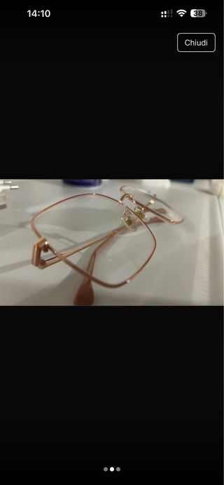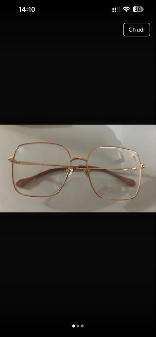 Elegante montatura per occhiali da vista Dior, con un design che richiama lo stile retrò. - Montatura in metallo color oro - Dettagli sulle aste.