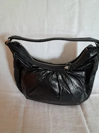 Borsa nera da donna con manico. Può essete indossata a mano o a tracolla. Calvin Klein Jeans in pelle nera. - Design con pieghe. - Chiusura con cerniera. - Manico curvo non rigido. Foderata. Internamente è dotata di una tasca chiusa con zip. In ottimo stato. Misure: 32 x 18 x 8