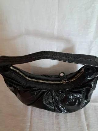 Borsa in pelle nera, un accessorio elegante e versatile. - Dettagli in metallo dorato. - Logo impresso sul davanti. - Charm con logo. - Sacca antipolvere inclusa.