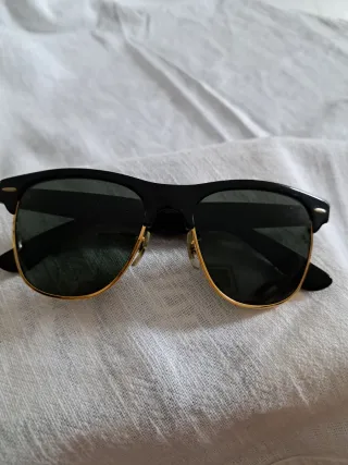 Occhiali da sole Ray-Ban modello Wayfarer MAX. - Montatura in acetato nero e metallo colore oro. - Lenti scure con timbro Non presenta imperfezioni. Prezzo trattabile.