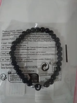 Elegante bracciale con perline nere e una lettera J in metallo. - Design unico con iniziale. - Fabbricato in Cina.
