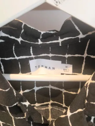 Camicia a maniche corte nera con rigatura bianca, condizioni buone, taglia M. Marchio Topman, 100% Viscosa
