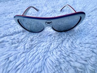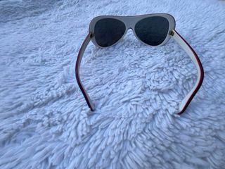 Occhiali da sole con montatura bianca e dettagli rossi e blu. - Lenti a specchio. - Logo sul lato. Articolo vintage ben conservato