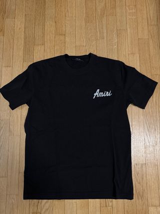 Maglietta Amiri nera con logo sul petto. - Logo Amiri in corsivo bianco sul lato sinistro del petto.