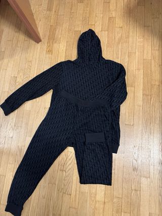 Tuta Dior completa con iconico motivo. - Motivo all-over Dior. - Tessuto confortevole. - Cappuccio con bottoni.