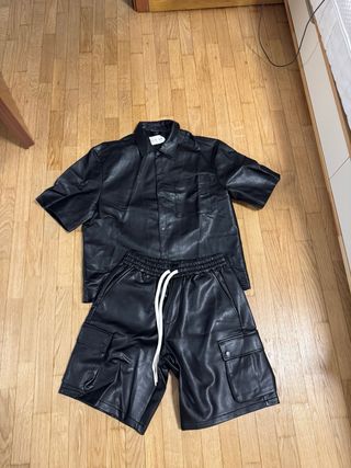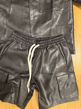 Set composto da camicia e pantaloncini in eco pelle. - Camicia a maniche corte con colletto. - Pantaloncini cargo con coulisse e tasche laterali.