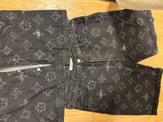 Completo composto da camicia e pantaloncini in denim con fantasia monogram. - Fantasia monogram LV. - Tessuto denim.