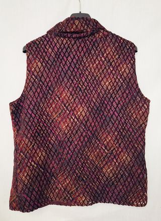 Gilet Zuiki rosso scuro con ricamo nella parte superiore, sia nella parte anteriore che in quella posteriore. Tessuto 100% viscosa ma un po' pesante e molto elastico. In condizioni eccellenti. Taglia L: spalle 35 cm, petto 33,5 cm (si estende fino a 50 cm), lunghezza 59 cm