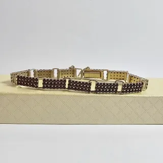 Elegante bracciale in argento d 'orato con incastonature di granati. Misura cm 17, 5 - Pietre: Granati - Materiale: Argento - Colore pietre: Rosso - Colore metallo: Argento