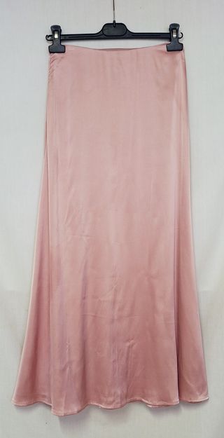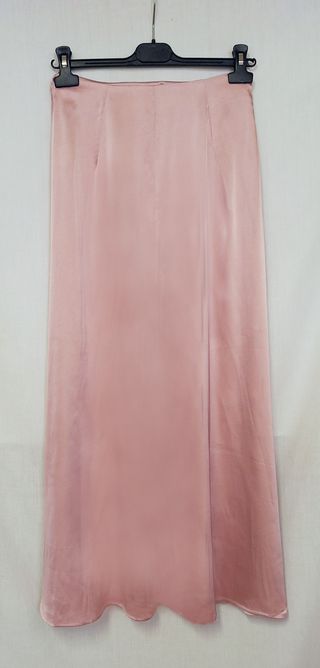 Gonna lunga Shein in raso rosa (97% poliestere e 3% elastan). Chiusura laterale con cerniera. In ottimo stato. Taglia XS: vita 32 cm, lunghezza 93,5 cm