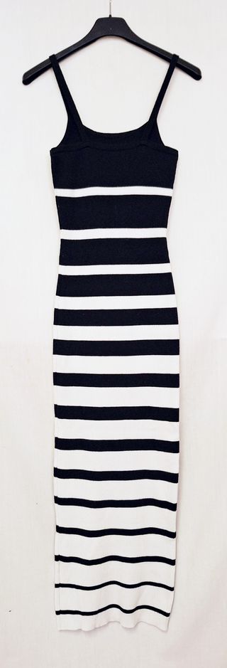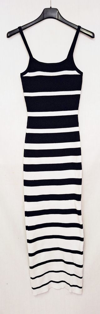 Vestito lungo Shein a righe bianche e nere, a costine. Tessuto 70% poliestere e 30% poliammide, risulta molto elastico. In ottimo stato. Taglia XS: spalle 17 cm, petto 28 cm, vita 24 cm, fianchi 29 cm, lunghezza 117 cm circa