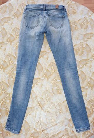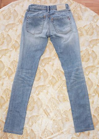 Jeans Replay mod. Rockxanne skinny a vita media. Chiusura con cerniera e bottone; tasche anteriori e posteriori. Colore celeste; tessuto 98% cotone e 2% elastan. In ottimo stato. Taglia non indicata, a mio parere vestono una Xs ma raccomando di controllare le misure: vita 31 cm, fianchi 43,5 cm, h cavallo 20,5 cm, lunghezza 91,5 cm, fondo gamba 13 cm