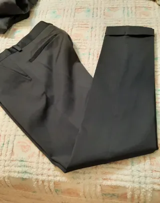 Pantaloni eleganti da uomo in colore nero. - Taglio dritto. - Vita con passanti per cintura. - Tasche laterali. - Fondo con risvolto.
