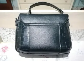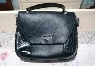 Vendo borsa a mano/tracolla nera di Marina Galanti, con parte centrale in similpelle a grana fine e pannelli laterali dalla stampa effetto coccodrillo. Chiusura magnetica. Modello versatile ed elegante, presenta due scomparti principali divisi da una tasca con zip. Il prezzo tiene conto dei segni d'usura (bordatura consumata e mancante sul manico e sulla parte anteriore della borsa; piccola spellatura della tracolla e moschettone leggermente rossiccio/ossidato). Misure: 26x21x9 cm circa. Se vuoi dare un'occhiata al mio profilo, magari trovi altro e facciamo una spedizione unica così risparmi.